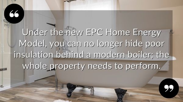 In short, under the new HEM, poor insulation will no longer be able to hide behind a modern gas boiler; the whole property will need to perform to reach that coveted Band C.