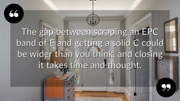 The gap between a scraped E rating and a solid C could be wider than you think, and closing that gap takes thought, time, and reliable contractors - our trusted circle will be getting a lot of calls!