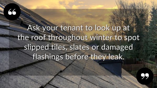 Proactive exterior maintenance as part of your landlord winter checks is far cheaper than internal repairs and redecoration: just a few minutes of your tenant’s time could save you a fortune.