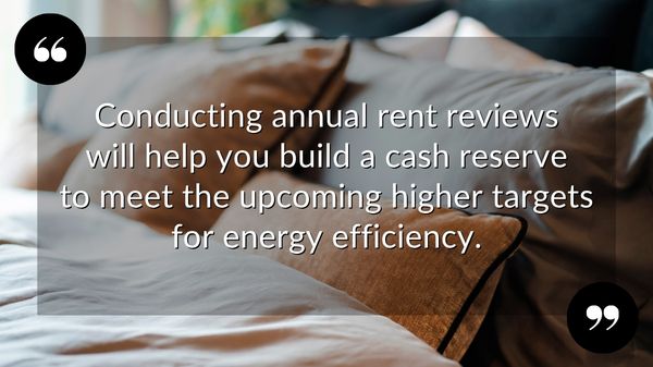 To make the most of the time until the deadline, conducting annual rent reviews will help you build a cash reserve to meet the higher energy efficiency targets.