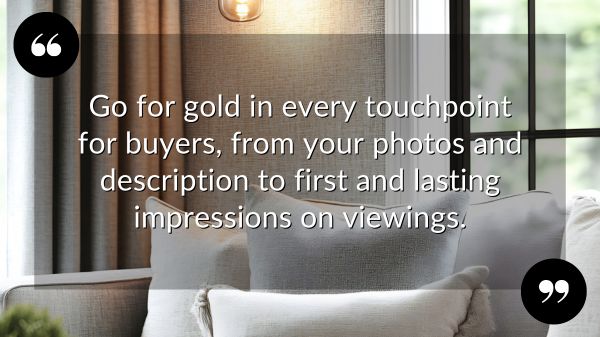 - Time your launch to build up to a first weekend of viewings, and consider inviting your agent's top buyers to an early-bird preview for a sense of exclusivity, opportunity, and urgency.