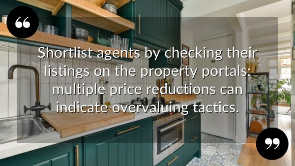 - Shortlist agents by checking their listings on the property portals: multiple price reductions or numerous homes that have sat around for ages can indicate overvaluing tactics.