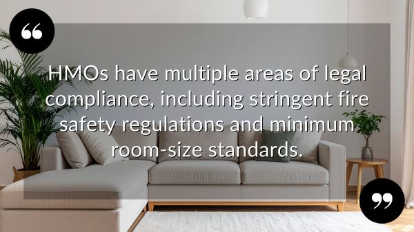 - There are multiple areas of legal compliance, including stringent fire safety regulations, minimum room-size standards, and the ratio of bathrooms to occupants.