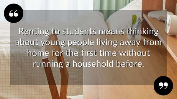 In a nutshell, renting to students means thinking about young people who are living away from home for the first time without much – or any – experience of running a household.
