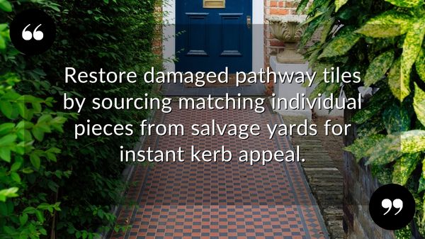 - Restore damaged hall and pathway tiles by sourcing matching individual pieces from salvage yards; great for instant kerb appeal outside, and lasting first impressions inside.